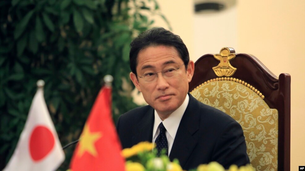 លោករដ្ឋមន្រ្តីការបរទេសជប៉ុន Fumio Kishida ស្ថិតនៅសន្និសីទកាសែតមួយបន្ទាប់ពីកិច្ចប្រជុំជាមួយរដ្ឋមន្រ្តី ការបរទេសវៀតណាម Pham Binh Minh នៅក្នុងក្រុងហាណូយ ប្រទេសវៀតណាម កាលពីថ្ងៃទី៦ ខែឧសភា ឆ្នាំ២០១៦។